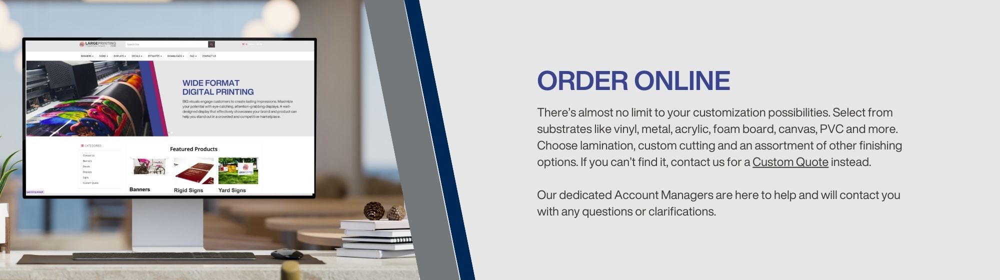 Displayed horizontally, vertically, indoors or out. Versatile and cost-effective, custom full-color banners provide high visibility that attracts and motivates customers.